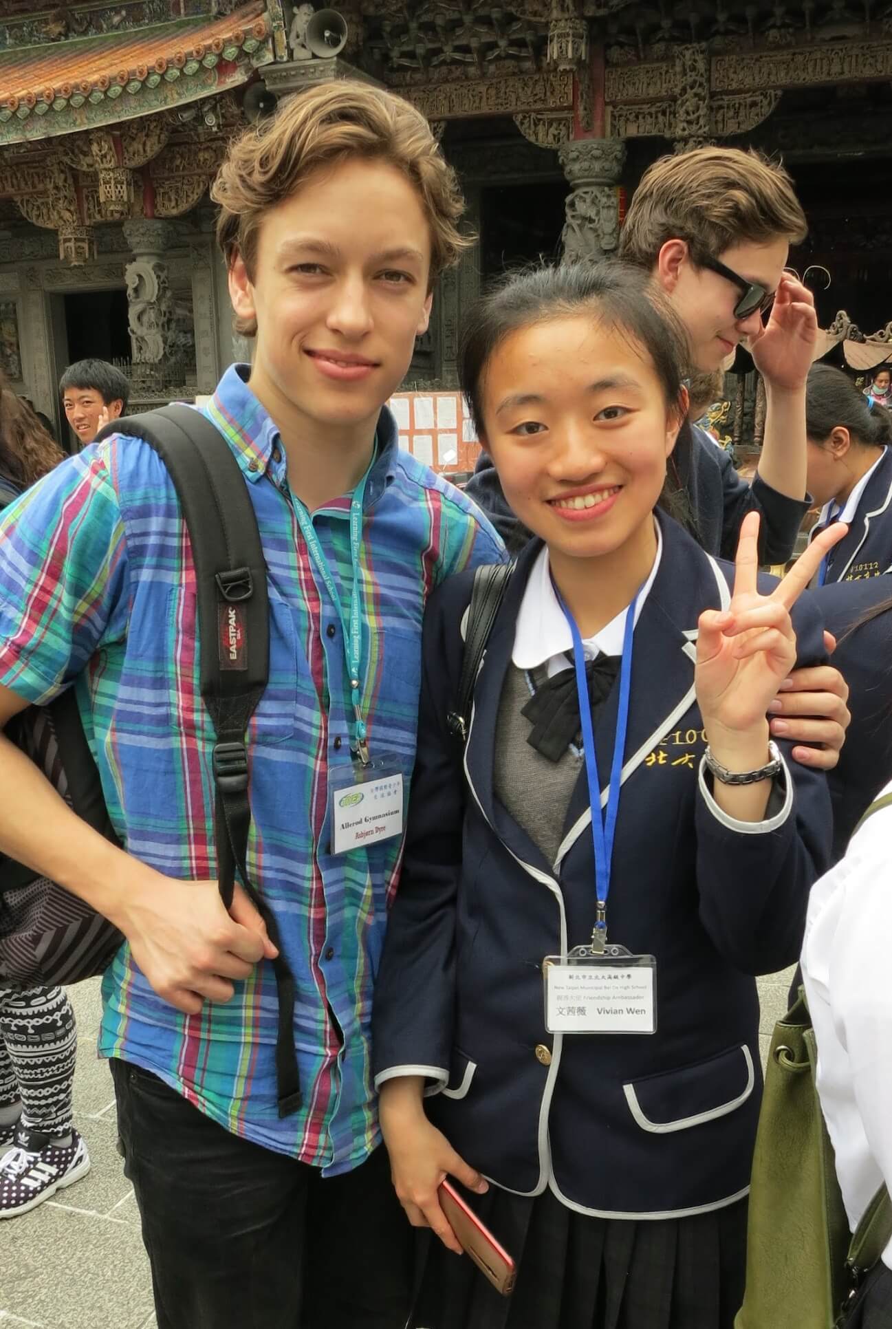 文茜薇高中三年代表學校接待各國學生、團體,英語口說和待人接物的能力日臻成熟。(照片提供/文茜薇)