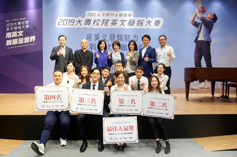 由《今周刊》與ETS臺灣區總代理忠欣股份有限公司共同舉辦的「用英語說服全世界─2019大專校院英文簡報大賽」決賽結果揭曉。成功大學大學企管系劉軒慧以流利的英語及極具吸引力的簡報技巧,從十名競爭者中脫穎而出,獲得第一名。中興大學企管系廖恬獲得第二名,輔仁大學財經法律系的劉慎遠及元智大學國際企管系張哲維分別獲得第三名和第四名。另外,獲得冠軍的劉軒慧更在簡報中以生動的線上來電實境模擬,及唱作俱佳的表現及靈活的反應,獲得最佳人氣獎。