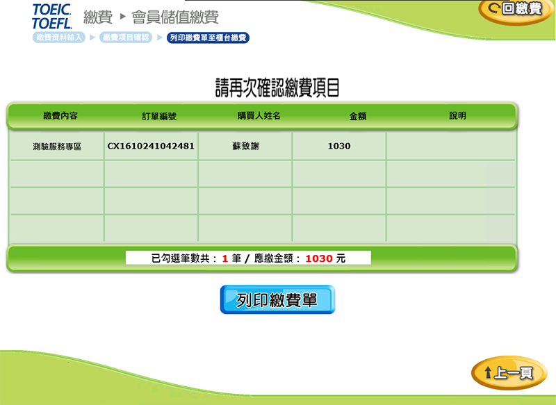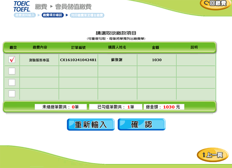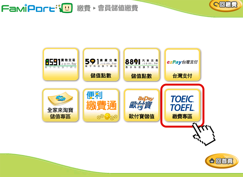 Step3. 選擇『TOEIC、TOEFL繳費專區』