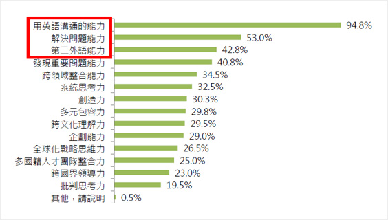 2.「用英語溝通的能力」是國際化人才最需具備的基本技能
