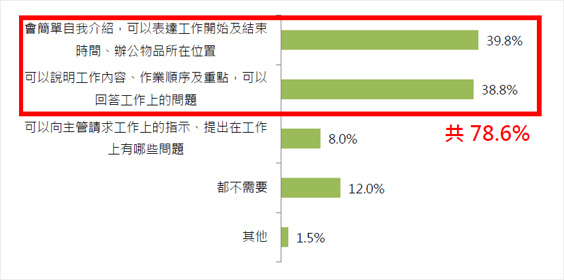 7. 近八成(78.6%)企業希望基層員工會用英語「簡單自我介紹」和「說明工作內容」
