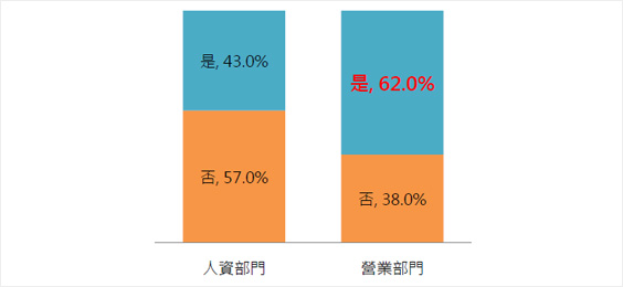 此次調查特別針對「基層員工的英語力」進行需求調查,並進一步分析「人資主管」及「營業部門主管」對於基層員工所具備的基礎英語能力是否有要求上的差異。