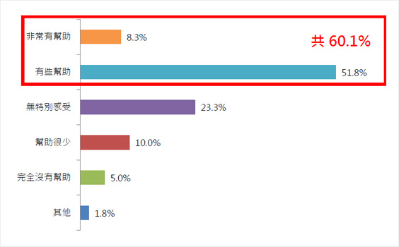 本次調查有64%的受訪企業認為語言能力會影響工作表現,也跟受到公司持續重視(例如:職級晉升、加薪)有正向關係(54.8%);另外超過六成(60.1%)的受訪企業認為公司或部門若設置語言門檻,有助於帶領新人或後進,且第一線的營業部門比人資部門感受更深刻。