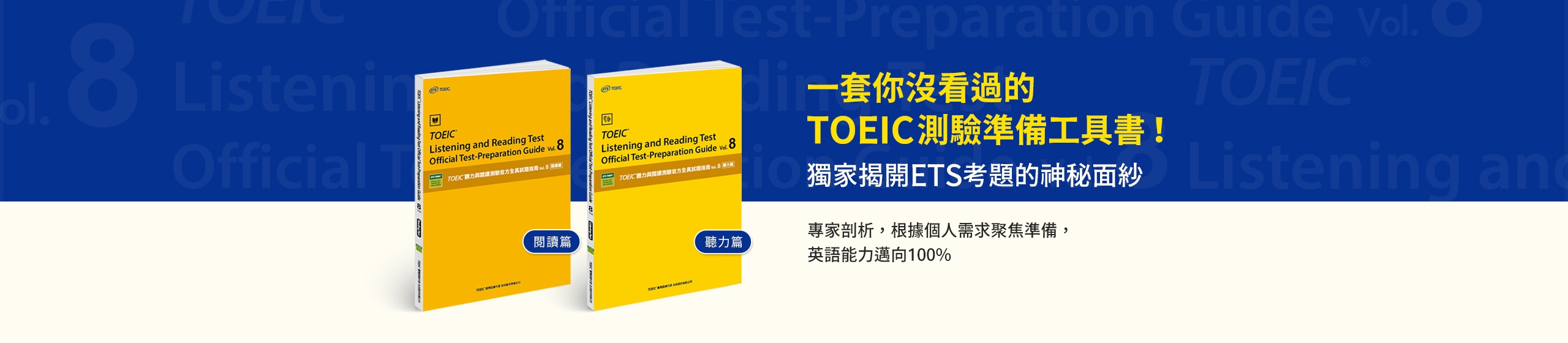 《TOEIC聽力與閱讀測驗官方全真試題指南》第八冊問世!