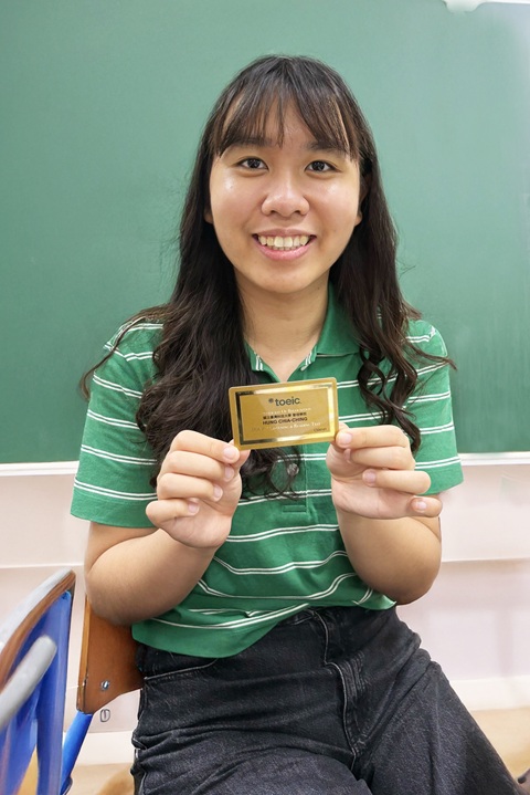 臺科大管理學院為TOEIC榮譽學院計畫成員,學生透過指定連結報名享有優惠,測驗成績達TOEIC 860分以上,還會獲得限定的TOEIC金色證書悠遊卡。洪嘉婧開心回憶,「我考了TOEIC 925分,收到管院通知可以領取那張TOEIC金色證書悠遊卡,覺得卡片很可愛,還拿去跟同學炫耀了一番。」