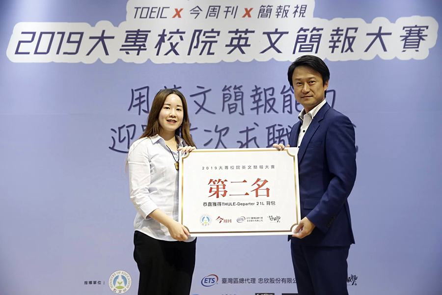 去年廖恬進一步挑戰大專校院英文簡報大賽,拿下第二名佳績。她表示,英文簡報製作的兩大原則是內容要條理分明、合乎邏輯,避免流於一片字海。還有用英語表達時要咬字清晰、用字準確,以及適當的語速和語調上的抑揚頓挫,以免聽眾一頭霧水。